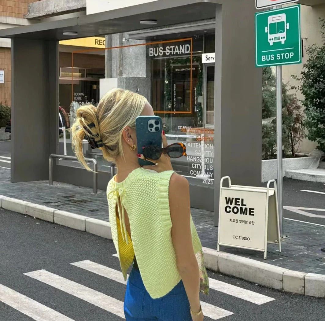 Knit Tie Back Sleeveless Open Back Knitted Top for Women